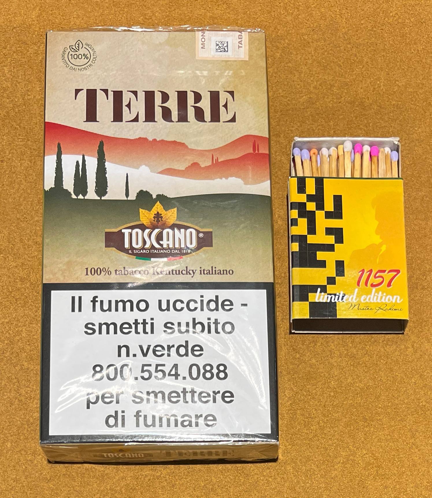 به دلیل طعم بسیار قوی و مشخص Terre Toscano، انتخاب نوشیدنی همراه باید با دقت انجام شود تا بتواند با آن هماهنگ باشد یا به تعادل برسد. نوشیدنیهای ملایم به راحتی زیر طعم این سیگار برگ از بین میروند.